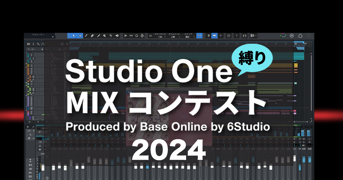 6スタが主催するBase Online by 6Studio内の楽曲コンペで選ばれた"オトメモード"を題材に「Studio One“縛り”MIXコンテスト2024」が開催され、一般投票によりミキシングエンジニア胡蝶 蘭氏が優勝!優勝したミックス・データをStudio Pro/Studio Oneユーザーへ無償提供