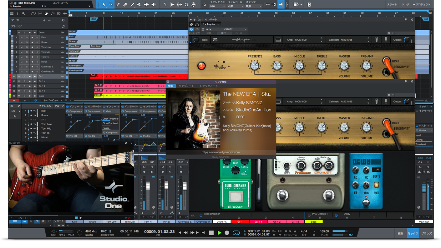 第三世代アンプ・シミュレーターAmpireは、入手困難なアンプ/キャビネット/ストンプ・ボックスをState Space Modelingテクノロジーで精密にエミュレートし、驚きのアンプ・サウンドをもたらしました。そのAmpireを駆使した楽曲「The NEW ERA | Ampire edition」を、超絶ギタリストKelly SIMONZ氏が制作。ギターは24Bit/192kHz USB-Cオーディオ・インターフェースStudio 24cへダイレクト接続しAmpireのMCM 800、4x12 M65、Tube Dreamer、PAE Chorus 1、Delayのプラグイン構成でレコーディングされています。貴重なKelly SIMONZ氏のダイレクト音も収録されており、リアンプすることも可能!ベースにKaz氏、ドラムにYosuke氏を迎えた白熱の超絶マルチトラック・データを無償提供致します!