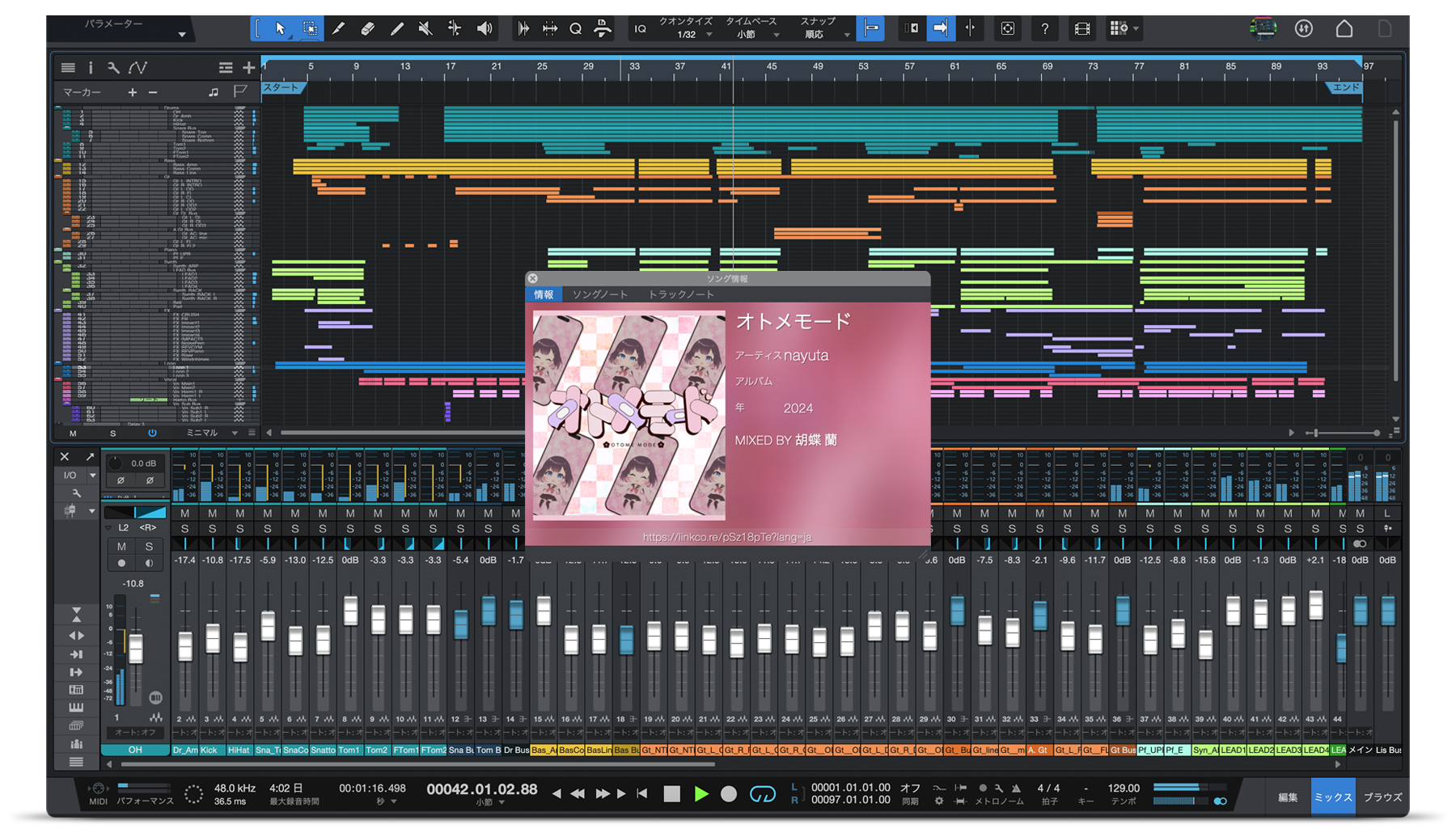 92トラック・ソング・ファイル- Studio One 6 Proで制作