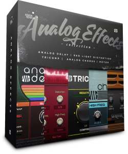Analog Effects Collectionは、純正アナログ・エフェクトのVST3/AudioUnit/AAXフォーマットのプラグイン5製品をセットにしたコレクションです。ワンヘッド・テープディレイをエミュレートしたAnalog Delay、6つのディストーション・モデルを選択できるアナログ・ディストーション・エミュレーターRed Light Distortion、3バンド・コンプレッサーTricomp、1から3ボイスのコーラス/ダブラー・プロセッサーAnalog Chorus、ロータリー・スピーカー・エフェクトRotorを収録しています。Analog Effects Collectionを使用して、最新のデジタル・ワークフローにヴィンテージのアナログ・キャラクターを追加してください。
