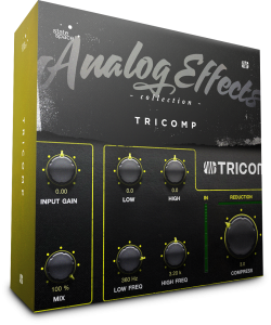 Tricompが、VST3/AudioUnit/AAXフォーマットのプラグインとして登場!他のDAWでも利用可能となりました。Tricompは3バンド・コンプレッサーです。3つすべての周波数帯にスレッショルドと圧縮率の自動設定ができ、低域と高域の相対コントロールがあるほか、切り替えのできるアタックとリリースの自動コントロールがあります。Tricompを使うと、ミックスを完成させたり、周波数の豊富な信号に明るさやパンチを加えたりすることができます。本プラグインは純正アナログ・エフェクト・プラグイン5製品をセットにしたコレクションAnalog Effects Collectionにも収録されています。