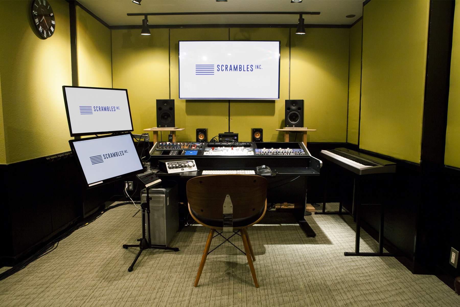 そして、SCRAMBLESの拠点があった方が良いだろうということで、コントロール・ルームとブースを備えたSCRAMBLE STUDIOを開設しました。SCRAMBLESのメンバーは、9割Studio Proユーザーで録りからミックスまで最近の作品は全部ここでやっています。Studio Proオペレーターも在籍していますから、日本のStudio Proユーザーにも是非利用して欲しいですね。