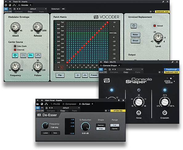 Fender Studio ProのNative Effectsやサードパーティ製プラグイン、外部ハードウェア・プロセッサーを使用してプロフェッショナルなサウンドを作成できます。
