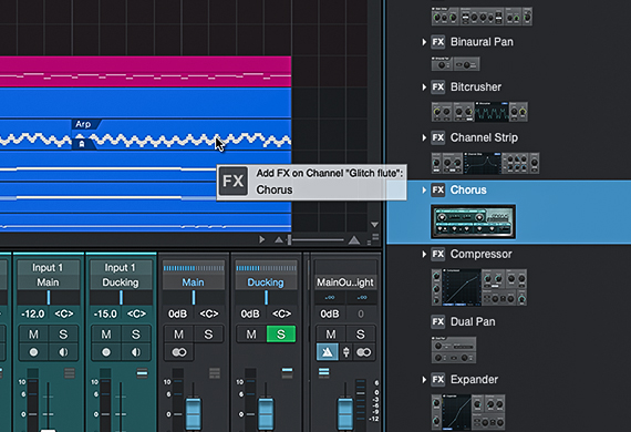 Fender Studio ProのNative Effectsやサードパーティ製プラグイン、外部ハードウェア・プロセッサーを使用してプロフェッショナルなサウンドを作成できます。