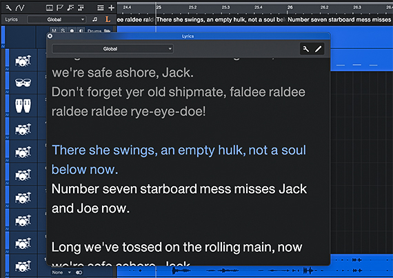 MIDI、オーディオまたはその両方で作品に歌詞を追加できます。言葉でセッションをナビゲートしましょう。